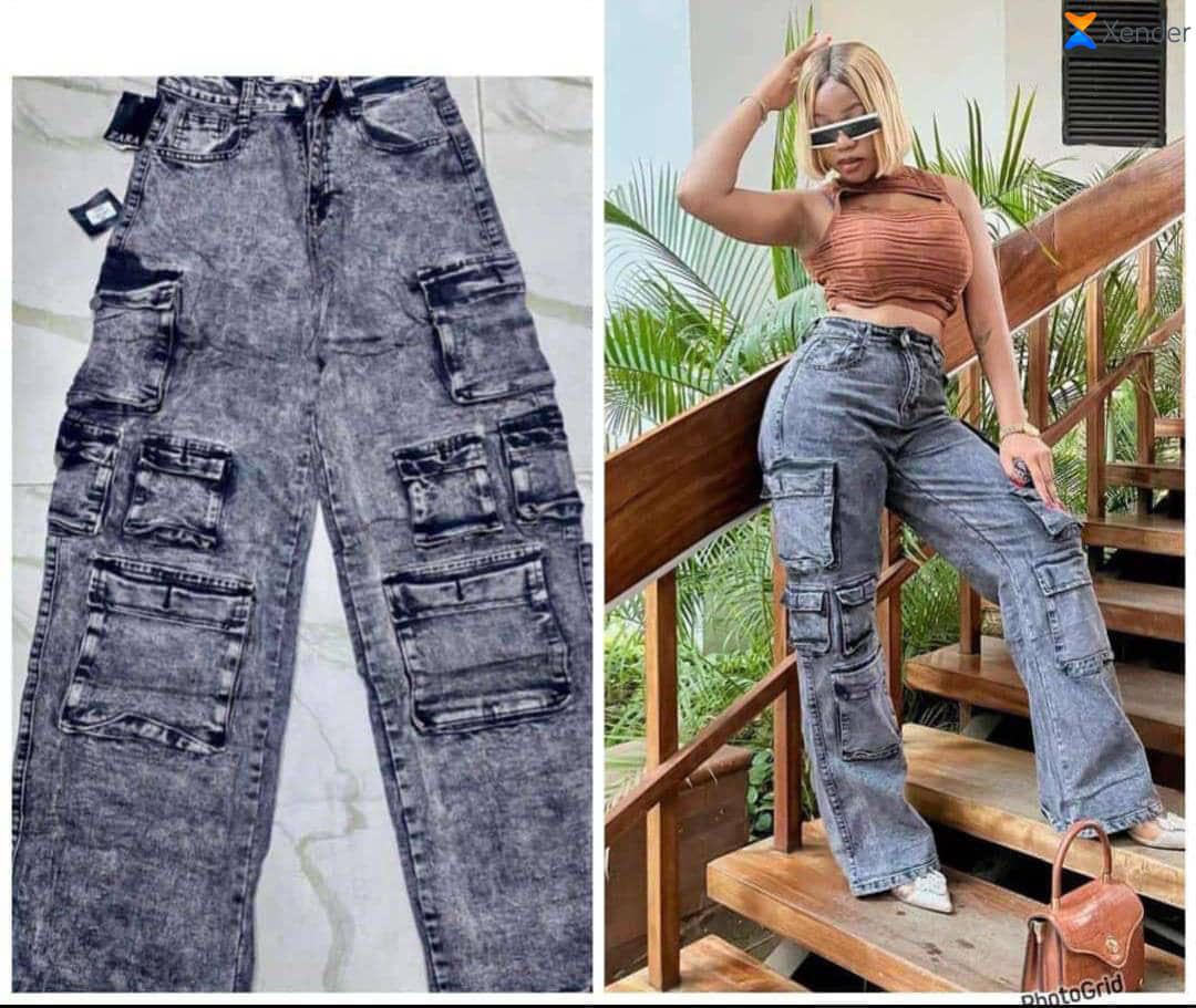 Make a bold fashion statement with these trendy Ladies High-Waist Cargo Denim Pants, designed to blend comfort, functionality, and modern street style.